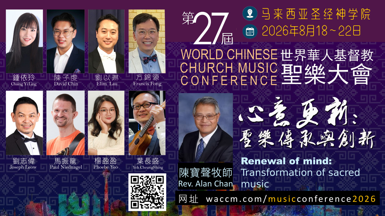 聖樂大會 Sacred Music Conference 2026 捲動至海報下方查看更多 點選海報可切換縱向/橫向模式 資訊 Info 註冊 Enrol 繳費 Payments 僅限團體代表使用 Only for group representatives. 團體註冊管理Group Booking 團體註冊繳費Group Payments